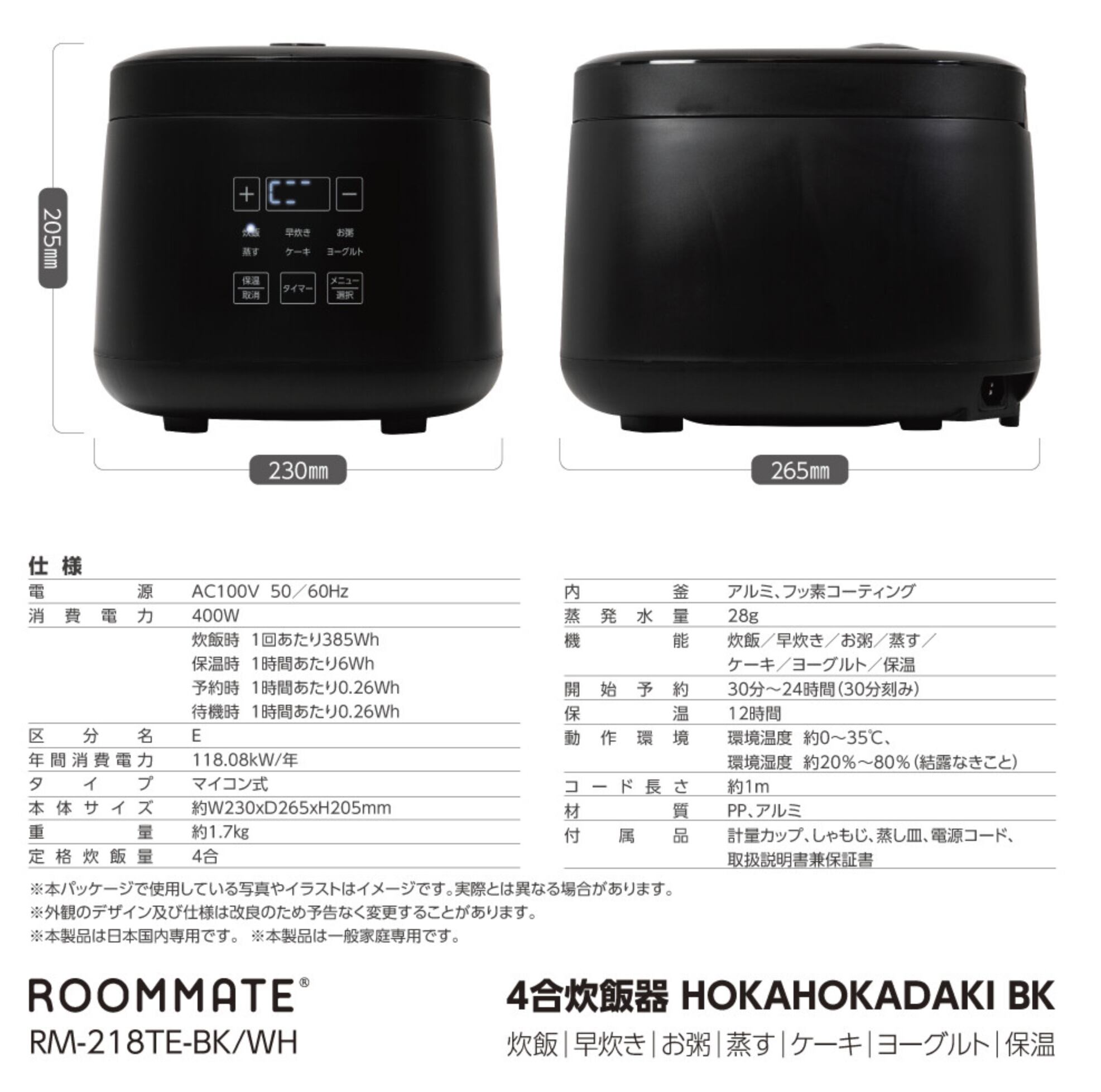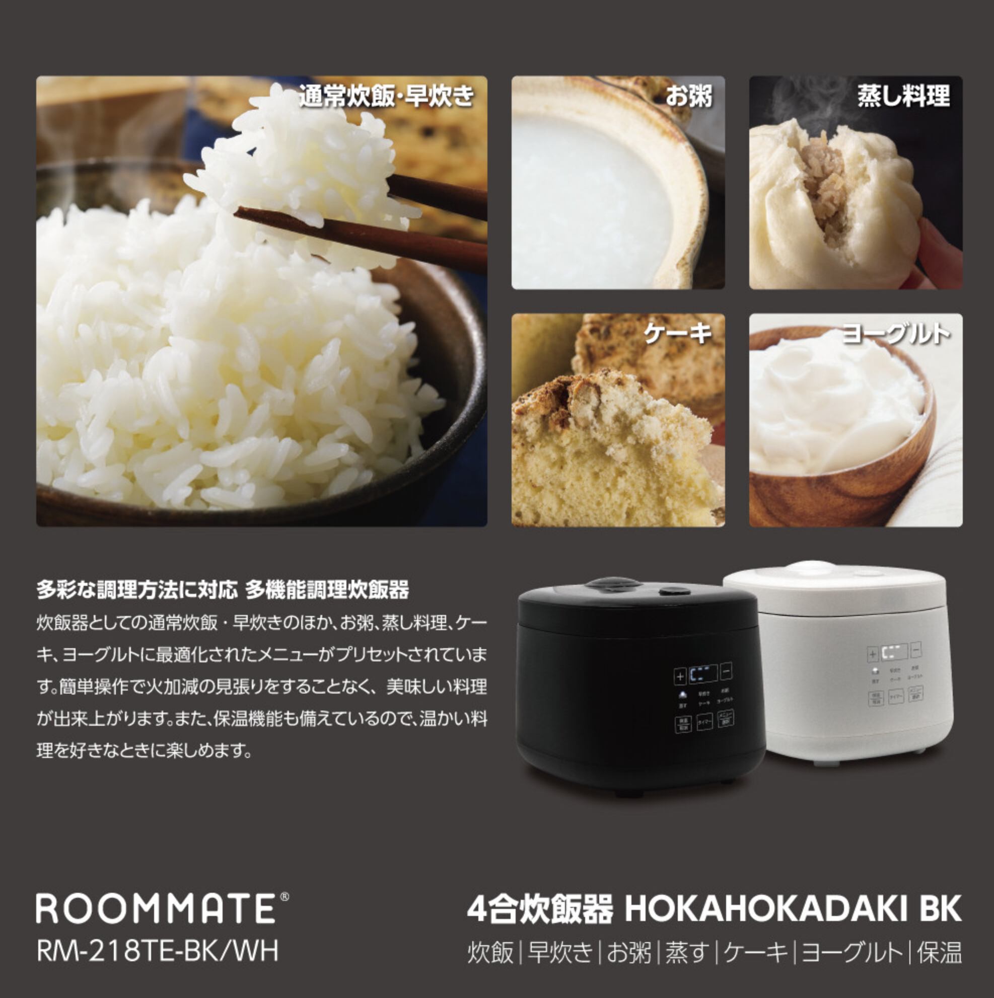 ROOMMATE 4合炊飯器 HOKAHOKA炊き RM-218TE