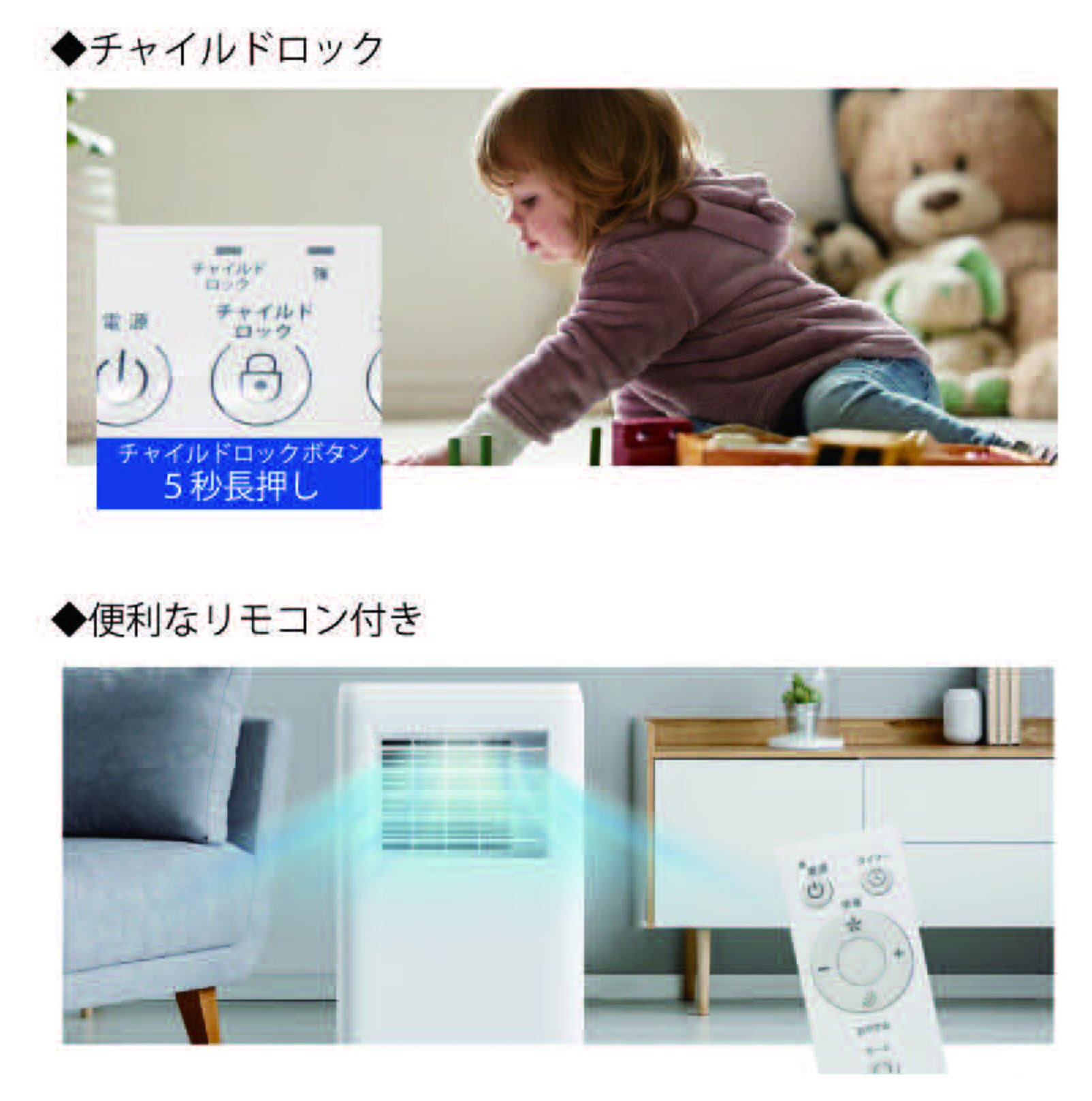 ●冷風、送風を長時間、直接体に当てない。
