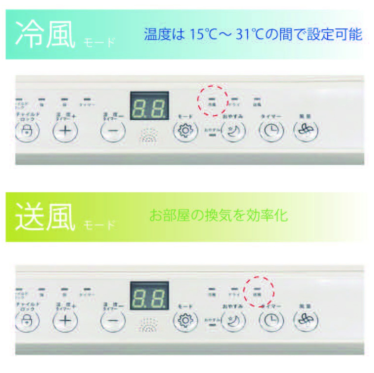 運転モード:冷風/ドライ/送風