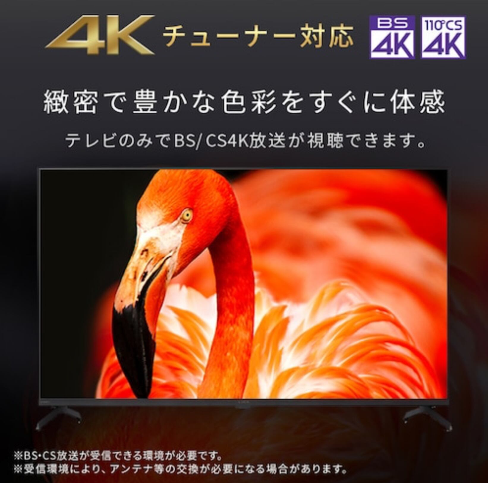 ●多様なコンテンツを4Kの美しい大画面に!豊富なネット動画サービスに対応。最新の映画作品や見逃した番組などを、4Kの大画面で楽しめます。GooglePlayストアからアプリのダウンロードも可能です。Dolby Atmos対応の音声処理システムにより、テレビ本体のスピーカーだけで簡単に立体音響を楽しめます。