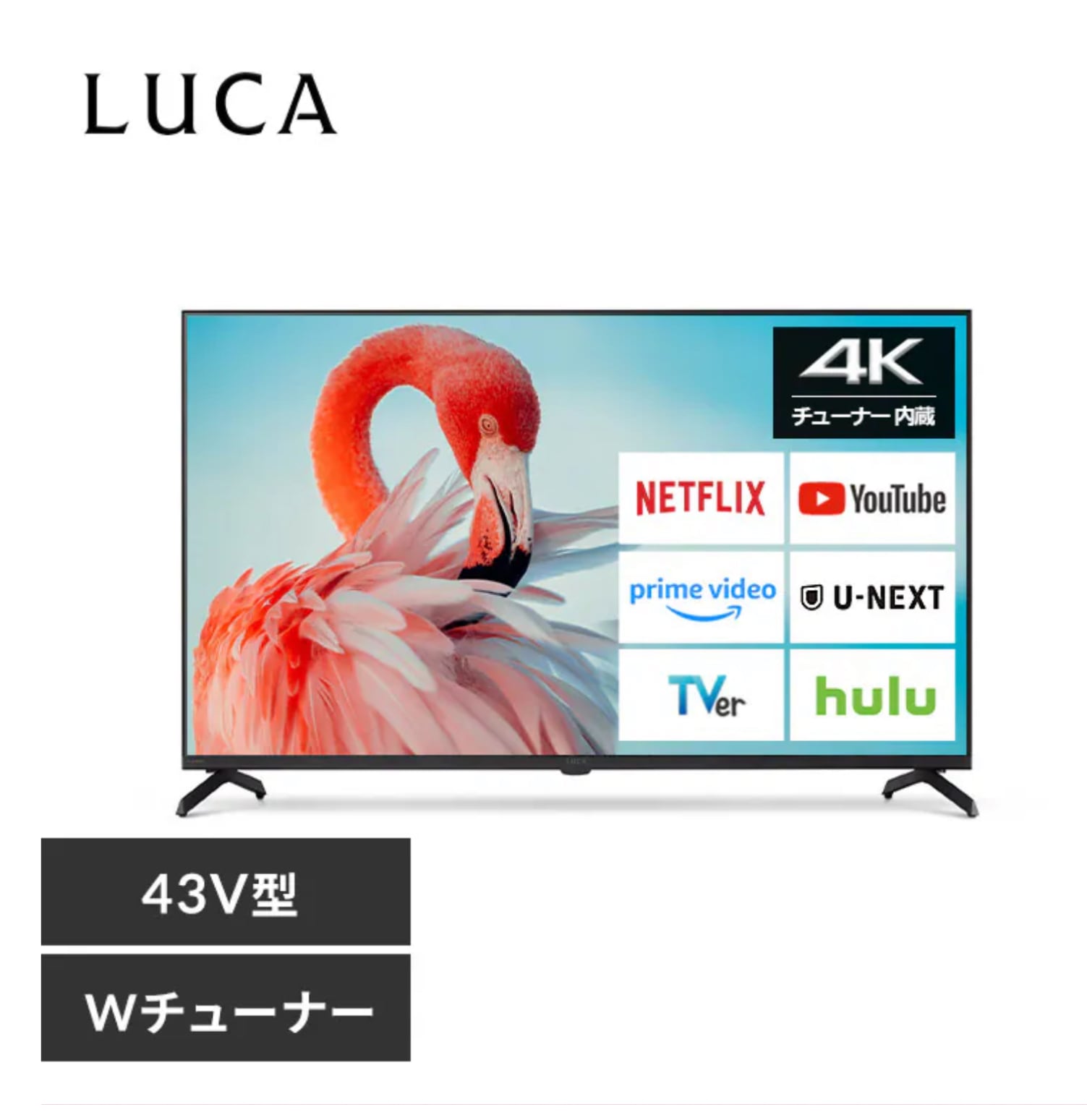 ●●画面サイズ:43v型 ●型番:LT-43UGX-F1 ●画素数(水平×垂直):3840×2160 ●チューナー:地上デジタル/BS・110度CSデジタル×2、BS4K・110度CS4K×2 ■スピーカー ○チャンネル:2チャンネル ○音声出力:10W+10W ■入出力端子 ○アンテナ端子:地上デジタル×1/BS・110度CSデジタル×1 〇AV入力端子:3.5mmステレオミニジャック×1 ○HDMI端子:HDMI×3(HDMI 1、HDMI 2、HDMI 3) ○ARC対応HDMI端子:HDMI 1 ○HDMI対応入力解像度:480i、480p、1080i、720p、1080p、2160p、VGA、SVGA、XGA、WXGA、SXGA ○音声出力端子:3.5mmステレオミニジャック×1、光デジタル音声出力×1 ○LAN端子:LANポート(RJ45)×1 ○USB端子:USB2.0端子(録画用)×1、メディア/サービス用×1 ●録画機能 ※別売HDDが必要:録画予約可能 ●使用環境:温度:5〜40℃/湿度:80%RH(結露なきこと) ●壁掛け金具(別売品)ネジ穴寸法:200×200mm、M6×20mm×2、 M6×10mm×2 ●付属品:Bluetooth?リモコン×1、リモコン用単4形乾電池×2、スタンド×2、スタンド固定用ネジ×4、AV入力アダプター×1、取扱説明書×1、保証書×1