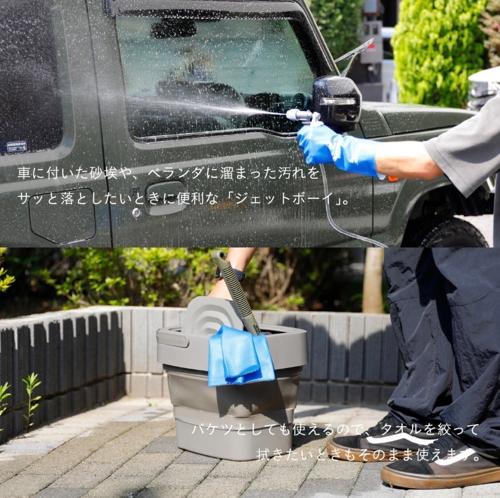 電源も水道も不要。『Comtool ジェットボーイ』は、水を入れてポンプをつなぐだけで、すぐに洗浄作業ができるポータブル洗浄アイテムです。ホースが届かない場所や、水道がないベランダ・駐車場でも手軽に使えるのが魅力。準備も片付けも簡単なので、日常からレジャーまで幅広いシーンで活躍します。