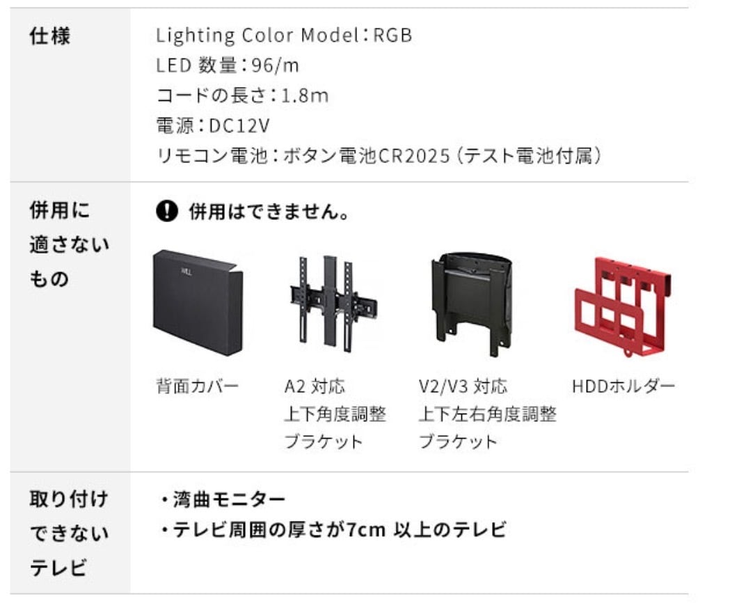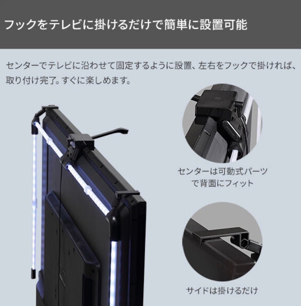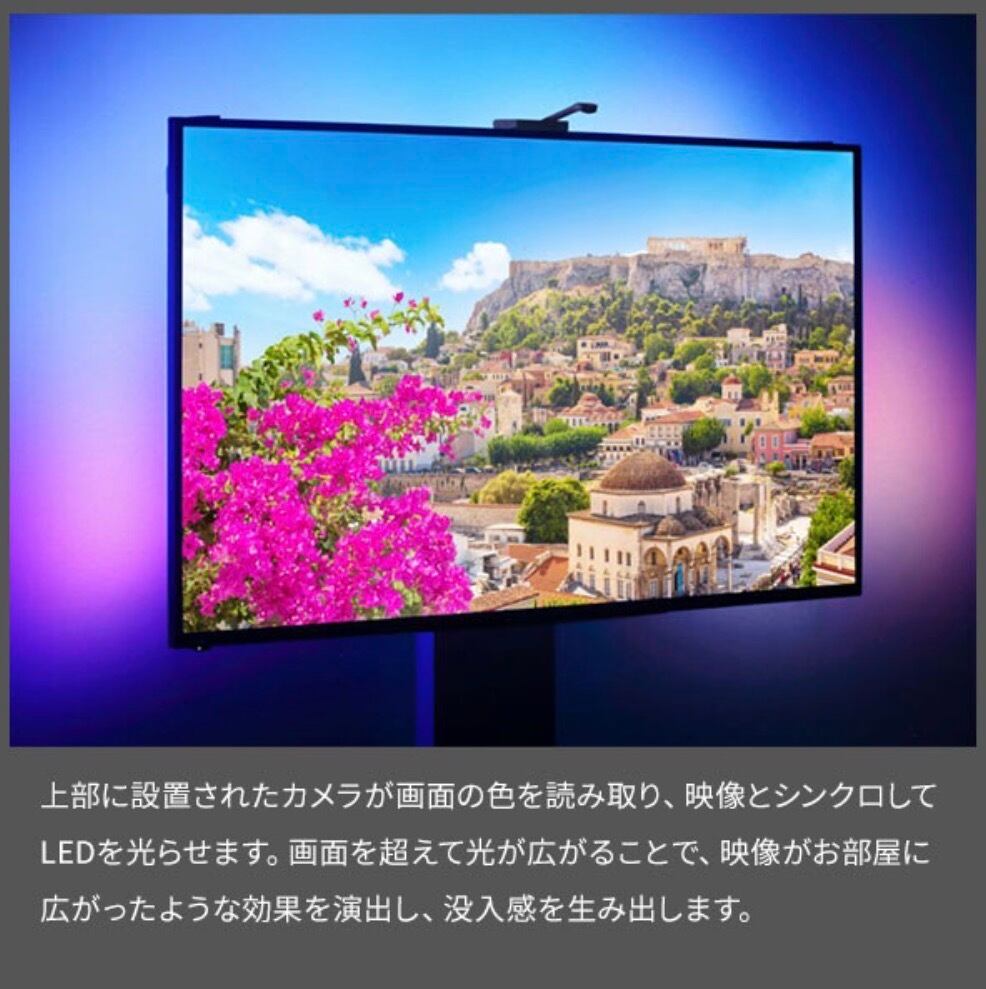 上部のカメラがテレビ画面の色を読み取り、映像と連動してLEDが光ります。
