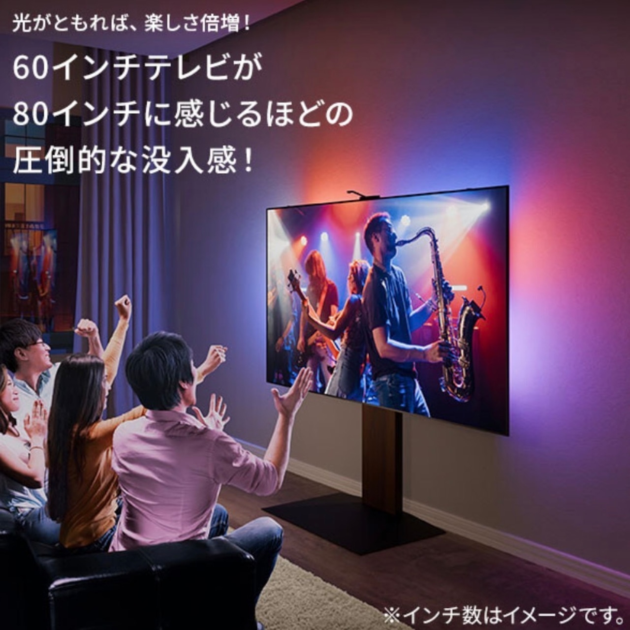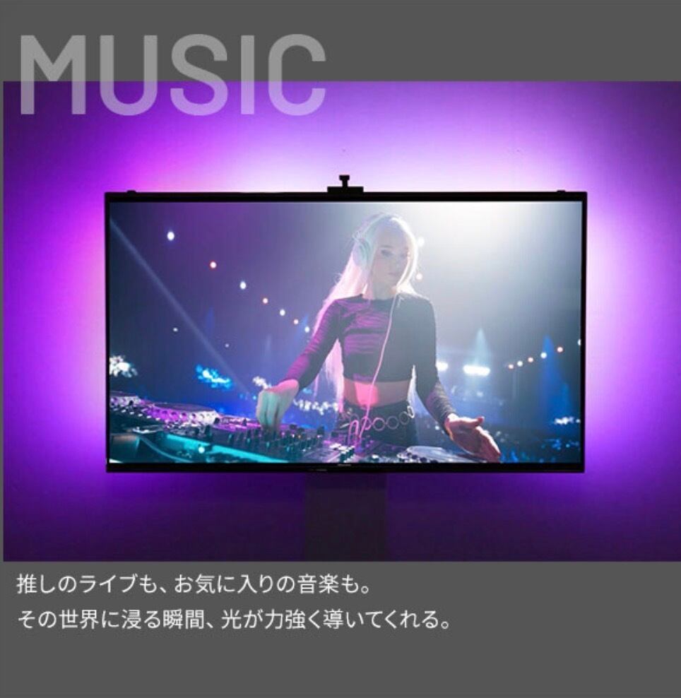 ゲームや映画、ライブ映像など、テレビの画面を超えて光が広がることで、かつてない没入感を得られます。